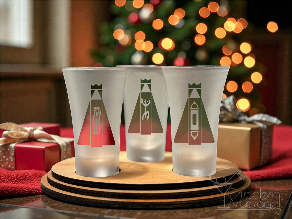Juego de 3 Tequileros Lord 1.75oz con Reyes Magos y base en madera